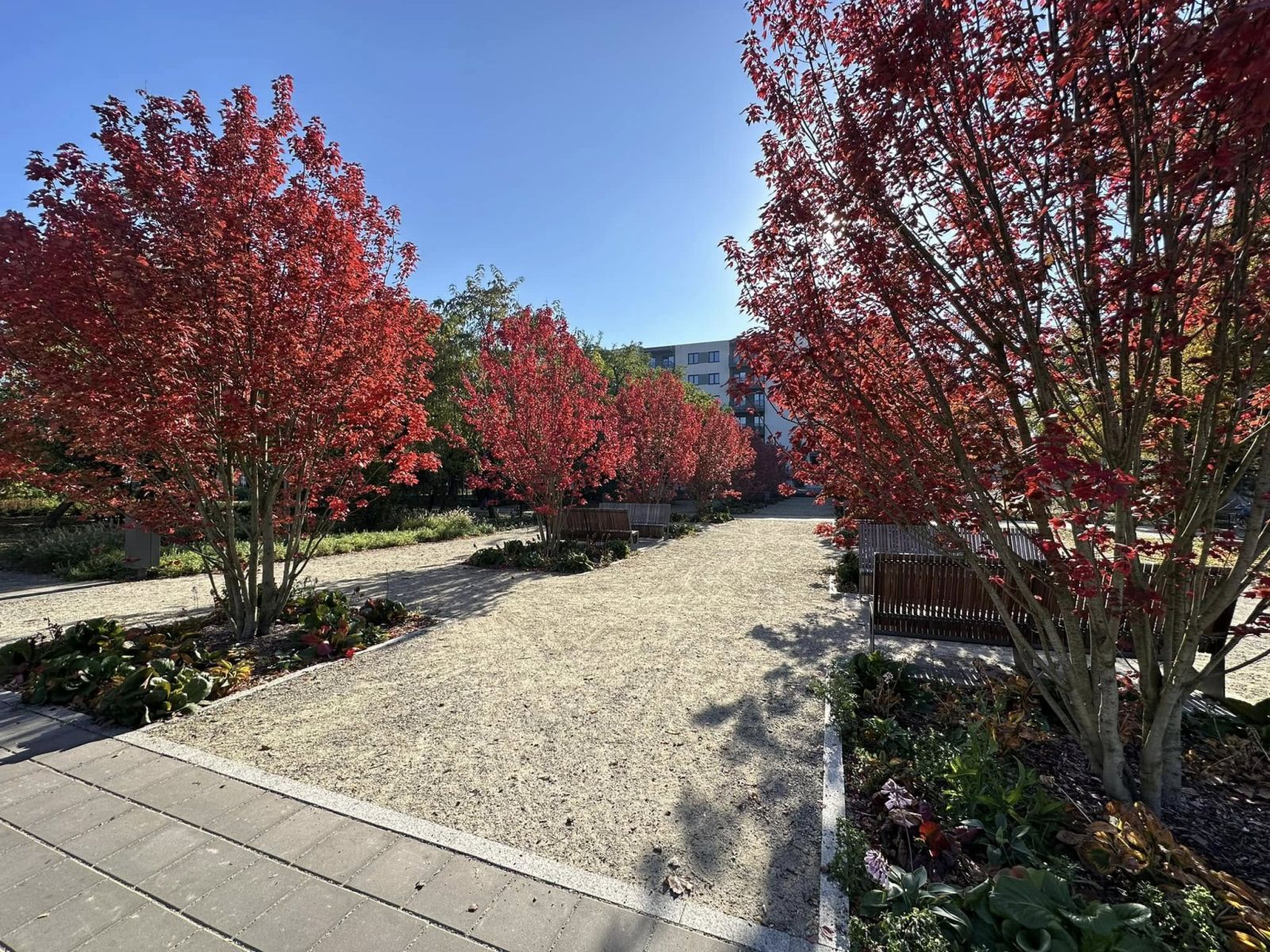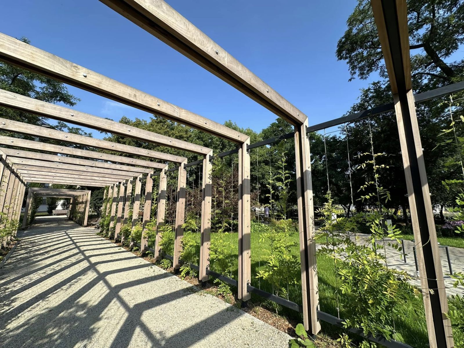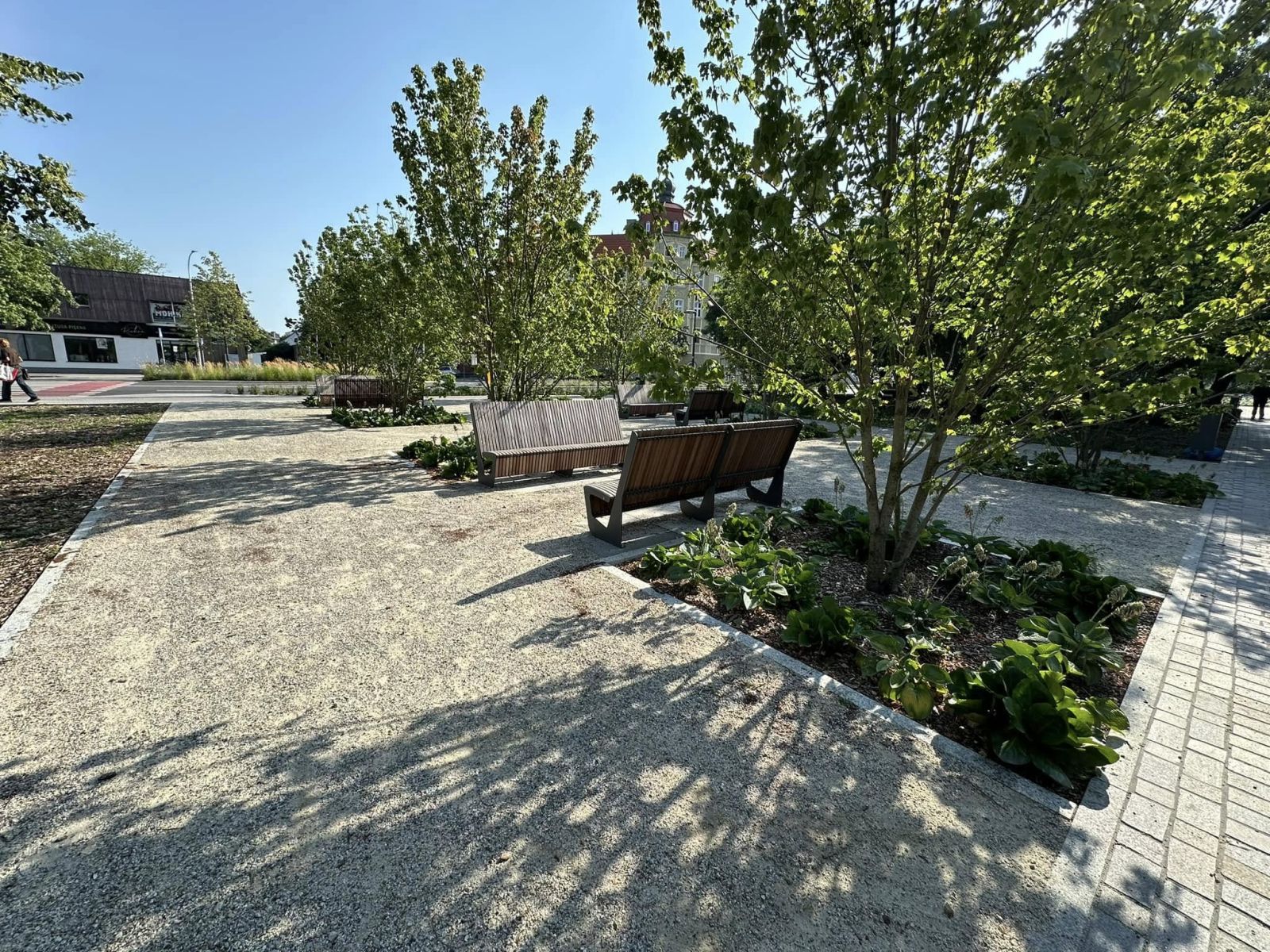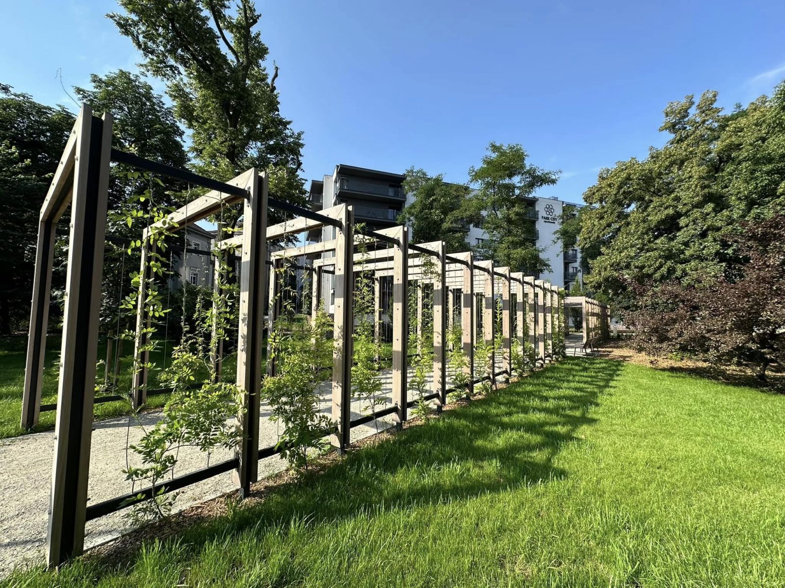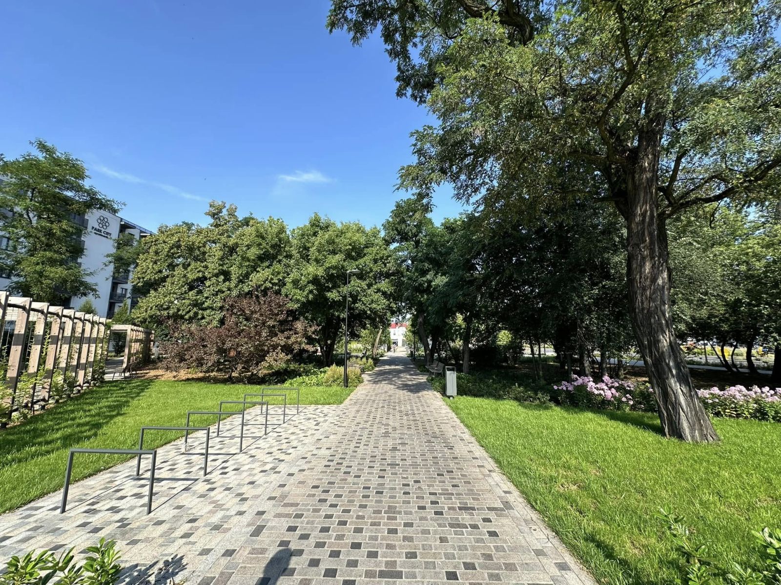 Kompleksowa przebudowa przestrzeni parkowej. Powstały nowe alejki i chodniki, nasadzono drzewa jednopniowe i wielopniowe, wykonano bylinowe kompozycje oraz system nawadniania obejmujący cały teren. Zadbano o uporządkowanie zieleni wysokiej i niskiej oraz harmonijne powiązanie przestrzeni z otoczeniem komunikacyjnym.