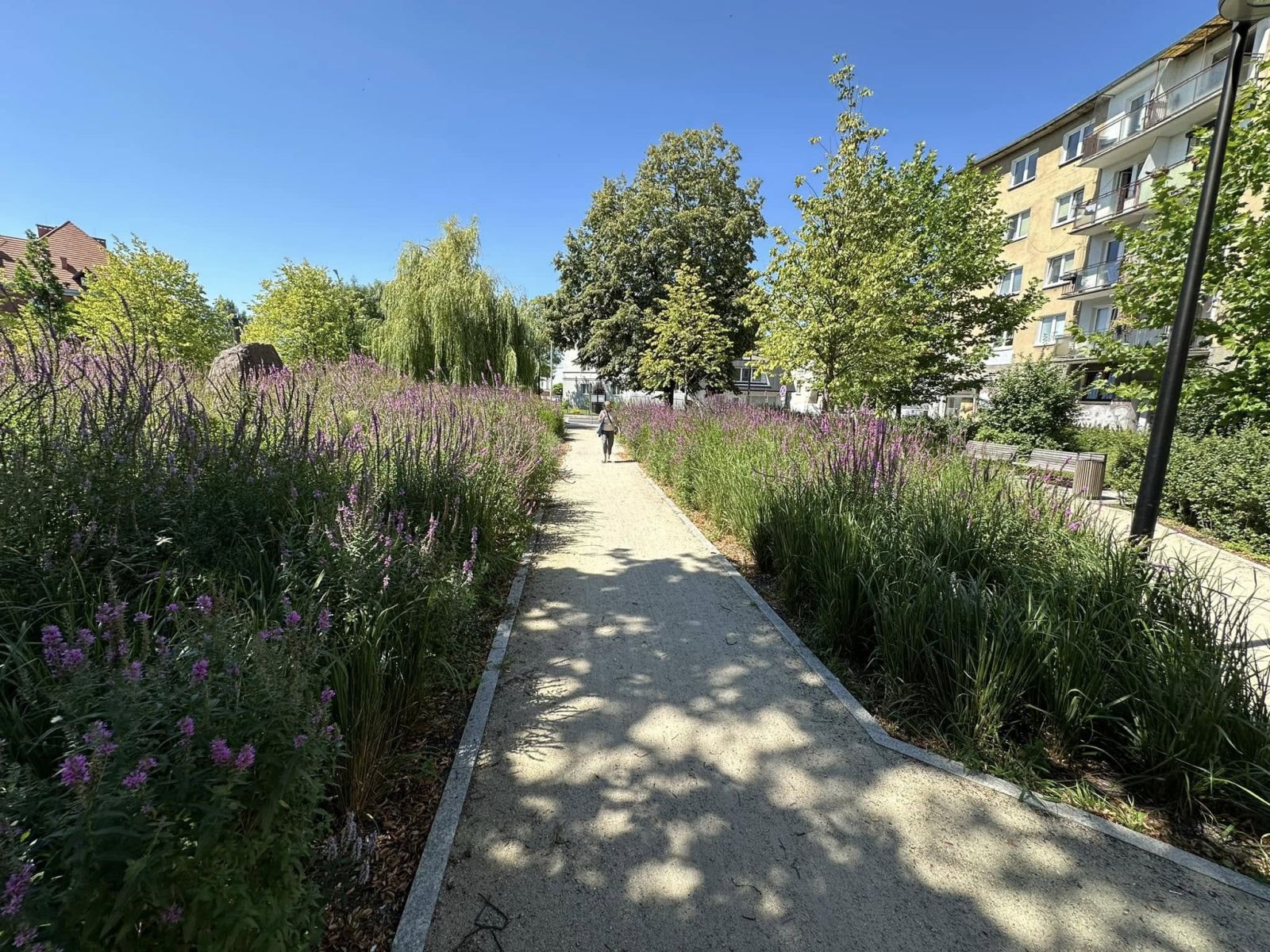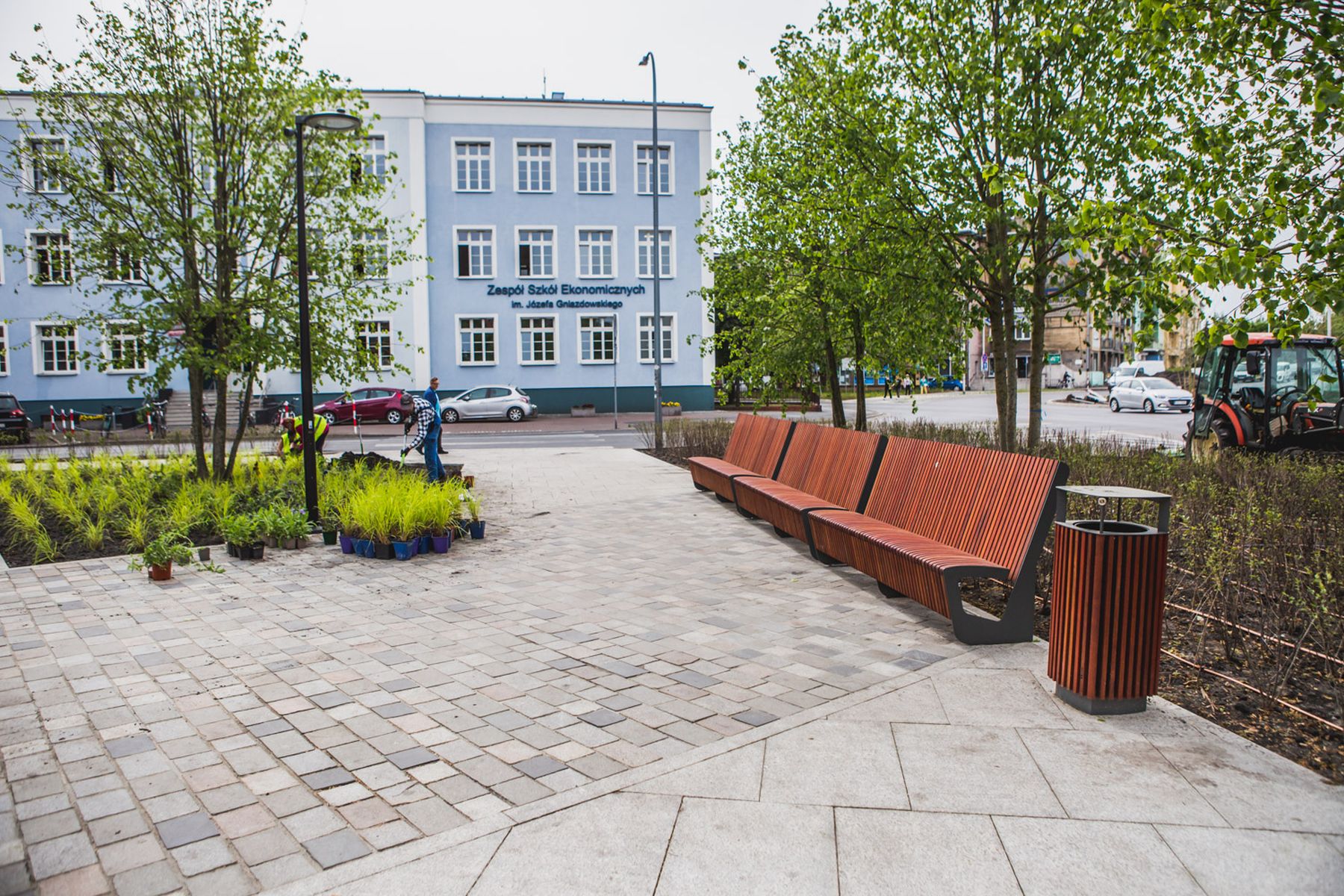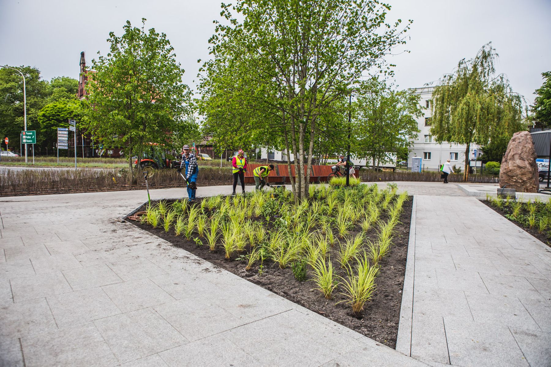 Zagospodarowanie współczesnej przestrzeni publicznej z bogatą warstwą nasadzeń. Wykonano roboty ziemne, system automatycznego nawadniania, posadzono drzewa i byliny, wybudowano małą architekturę oraz wprowadzono oświetlenie terenowe. Projekt łączy funkcjonalność z dekoracyjnym charakterem kompozycji zieleni.